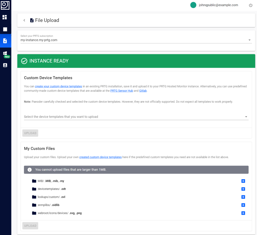 Click Select your PRTG subscription to select the subscription for which you want to upload files.