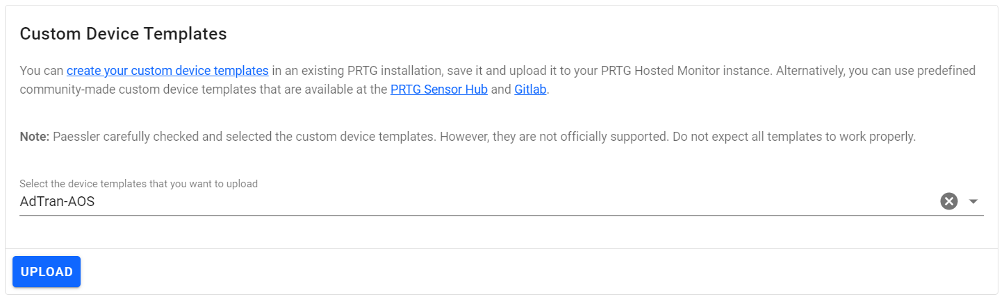 Click Upload to upload the custom device template files.
